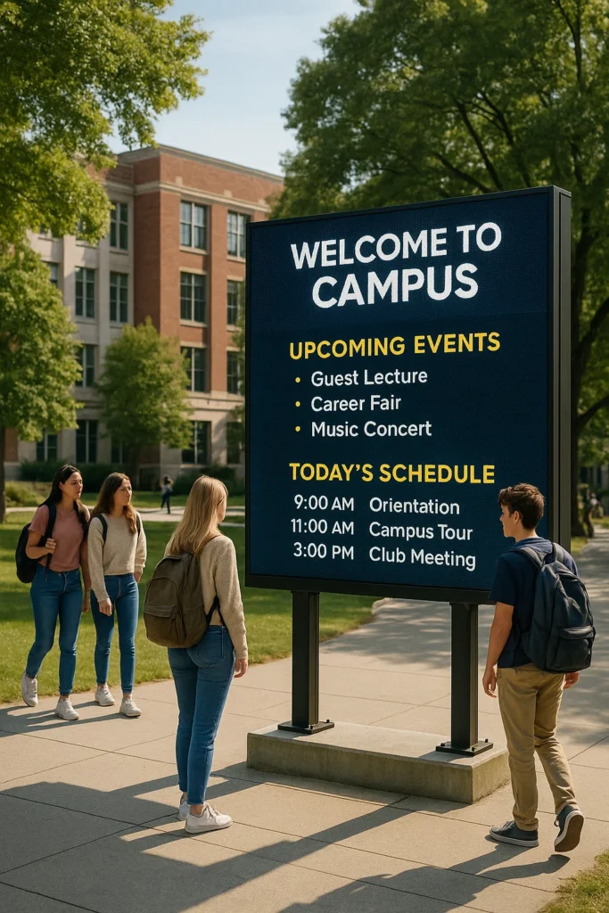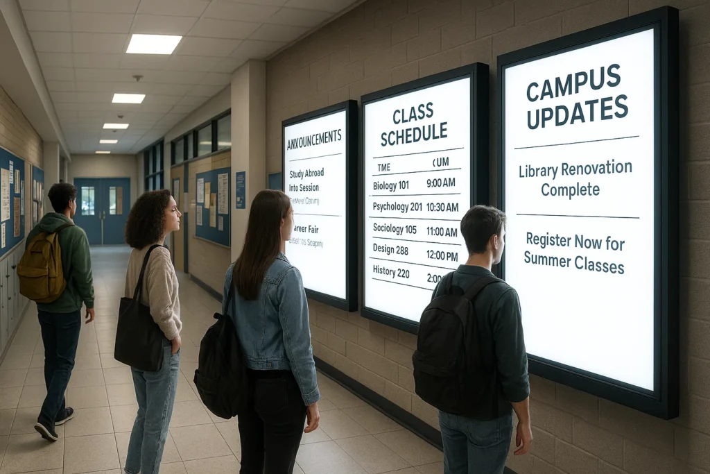 - Digital Signage: Informational displays for announcements, schedules, and campus updates