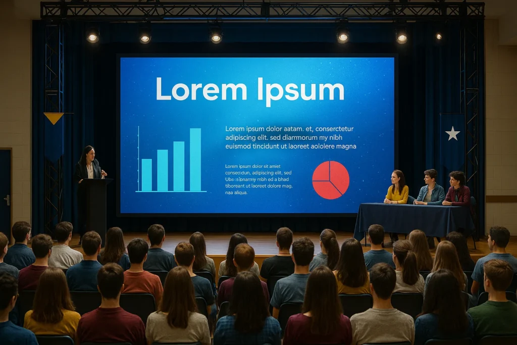 - Auditoriums & Events: Day-bright LED screens for school events, seminars, and competitions