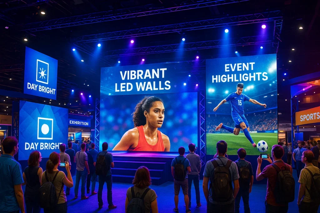 Image Suggestion: LED walls at a trade show or stadium displaying live content